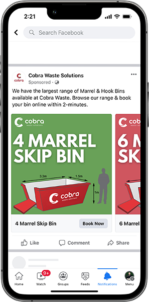 Utilising Facebook paid advertising, Google Ads and of course by optimising the newly built website (SEO), we were able to finally put Cobra Waste on the front foot.